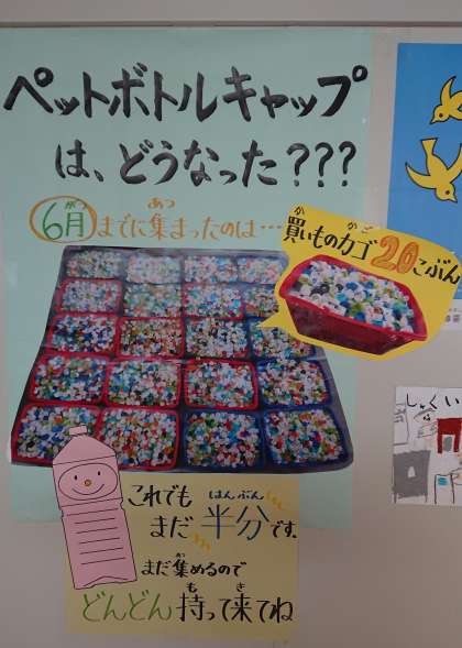 児童会(小学校)・生徒会(中学校)合同で実施中のエコキャップ回収活動。
