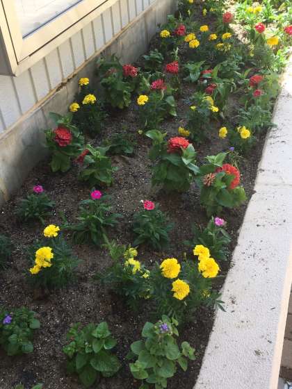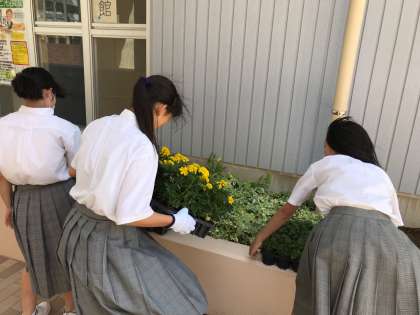 地域防災訓練の後に残って、生徒会のメンバーが花の植え替えをしてくれていました。