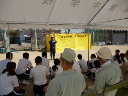 訓練終了後、浪速消防署長様より、「自然災害に備える、それが防災です。被害をいかに小さくするかを訓練で学ぶ。今日の訓練、熱心に行ってくれました。」と、講評を頂き、防災訓練を終了しました。