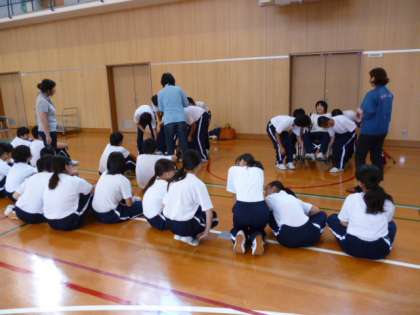 煙テント体験及び水消火器操作訓練、車イス操作体験訓練の