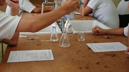 高校の授業で学ぶ「銀鏡反応」を体験します。