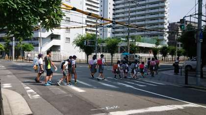 あいさつの大切さや社会のルールを守ること、集団登校班の約束事などを確認しました。