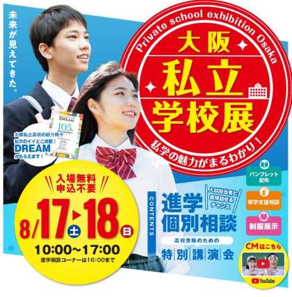 8月17日(土)〜18日(日)にかけて「大阪私立学校展」が、OMM展示ホールにて開催されます。