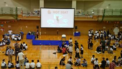 C-netの先生、高等学校・中学校の生徒が一緒になって、英語でアクティビティを行います。