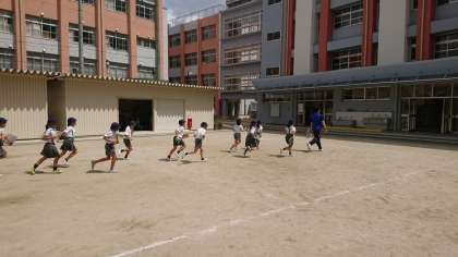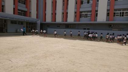 地震・津波の際、生命や身体の安全を守るために必要な知識・態度を身につけることを目的に、避難訓練を小中合同で実施しました。