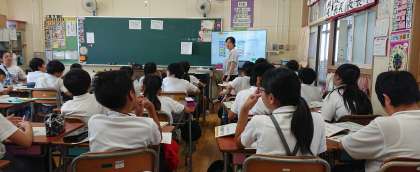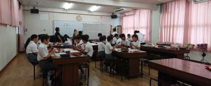 教科専門性を活かし、中学校教諭が小学校の授業を担当しています。