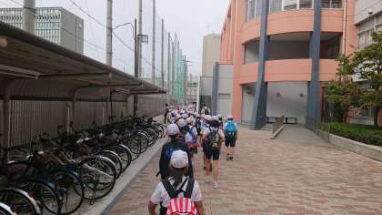 3・4年生は、服部緑地公園に向けて元気に出発しました。