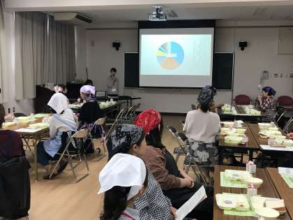 いつも児童生徒が食べている給食を試食していただきながら、栄養教諭と養護教諭からこどもたちの学校生活について話をさせていただきました。