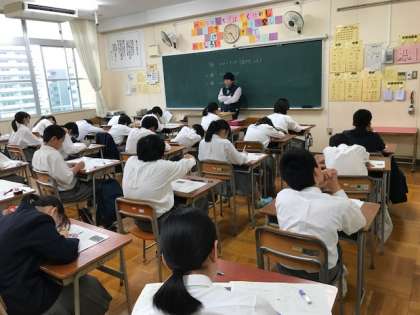 今日は社会、英語、保健体育、9年のみ美術が実施されています。