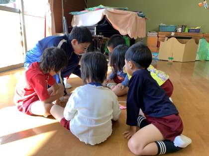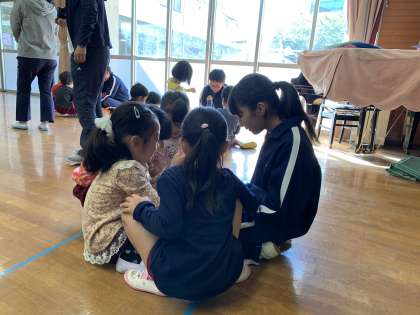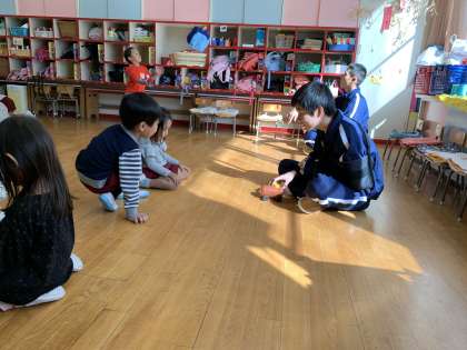 手作りのおもちゃを持参して一緒に遊んだり、楽しそうに一緒に歌を歌っていて、授業で学んだことを積極的に実践している様子が見られました。