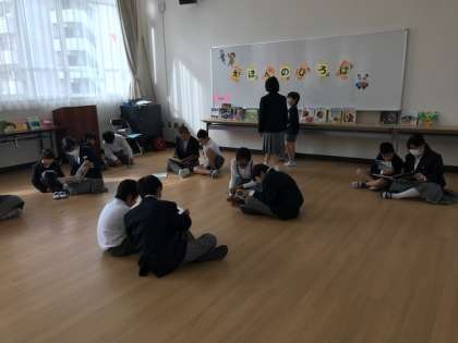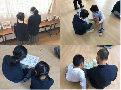 小中一貫校ならではの取り組みで、縦割りペア学級で読み聞かせ活動を実施します。