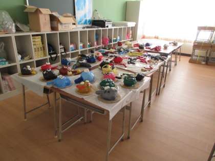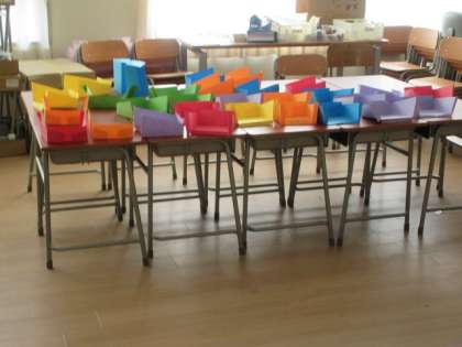 今月23日に予定されている作品展に向けて、3・4年生の児童が作製中の立体作品です。