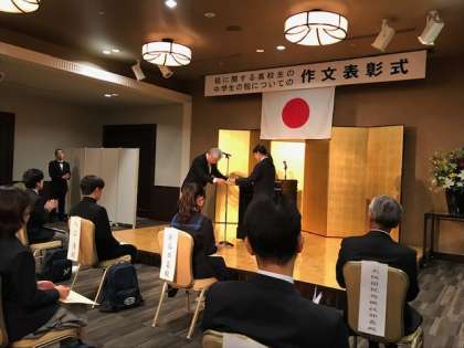 「税について知る」というテーマで、代表生徒が作文をしっかりと読み上げてくれました。