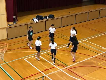 小学校6年生が、中学校の部活動を体験しています。
