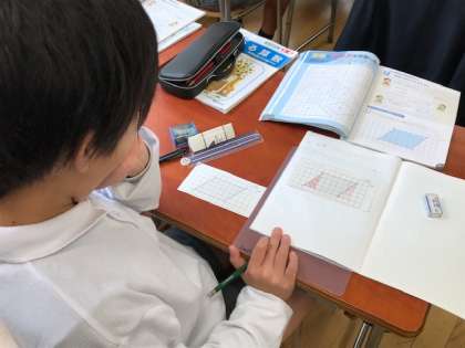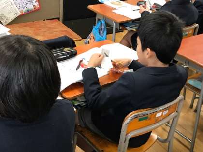 ノートに書きこんだり、実際に図形を切ってみたり、色々な考え方が出てきていましたね。