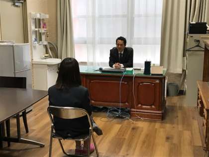 3学期の高校入試本番に向けて、9年生で個人面接練習がスタートしました。マナー講座などで教えてもらったことを実践しながら、中学校生活で印象に残っていることや高校3年間でがんばりたいことなど、質問に答えていきます。