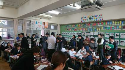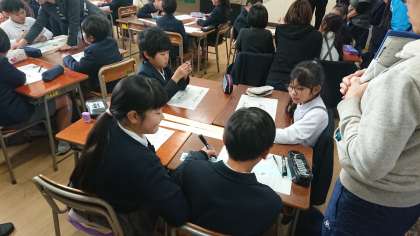 放課後、他校から参加された先生と一緒に研究協議会を実施しています。