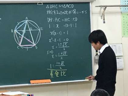 正五角形の中にある二等辺三角形が相似であることを利用すると…
