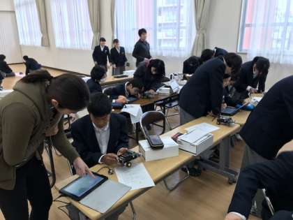 本日は、中学校で終日プログラミング学習に取り組んでいます。