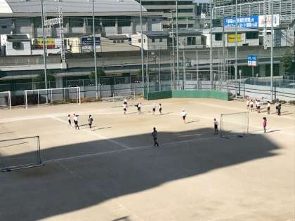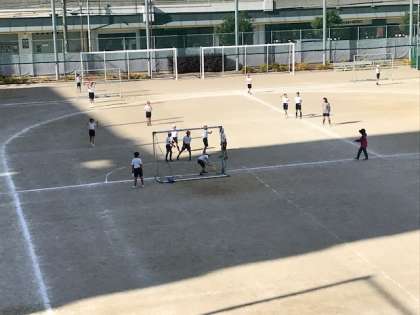 ボール投げ運動の授業で、5年生はハンドボールに挑戦しています。