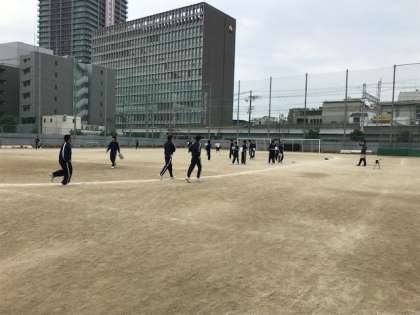 9年生の体育の授業では、男子は長距離走の記録測定に、女子はマット運動で基本姿勢を作るための倒立に挑戦しています。