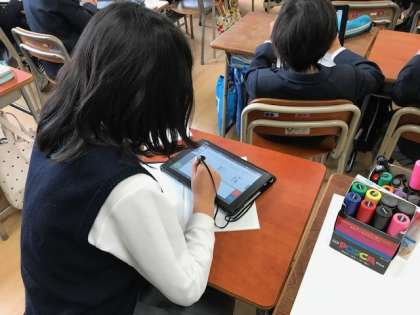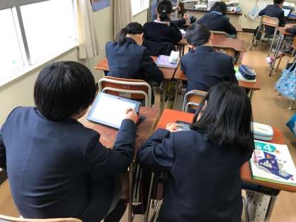 4年生の算数の授業では、今年2学期に導入された「タブレットドリル」を使ってこれまでの復習問題に挑戦しています。