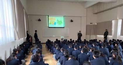 中学校の全校集会ではリーダー・イン・ミー「7つの習慣」のうちのひとつ「第3の習慣 大事なことから今すぐに」について話がありました。