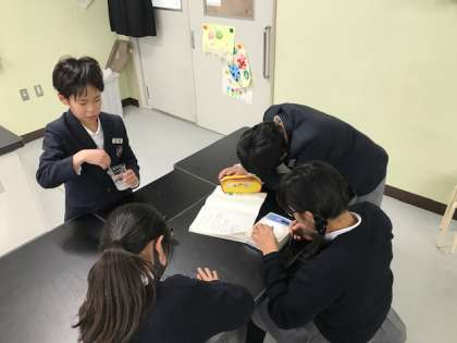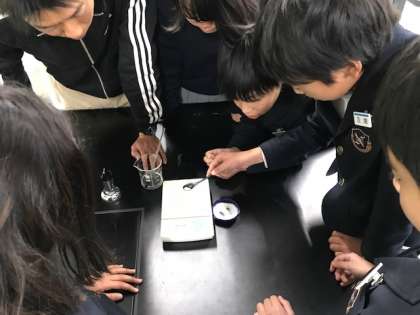 班で役割分担をして協力しながら実験を進めています。