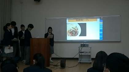 発表は、先週の総合の時間に班ごとに調べた、行きたい施設や食べ物について発表しました。どの班も調べた内容を発表ノートにしっかりとまとめられていて、とてもわかりやすいプレゼンができていました。全体説明のときに第6の習慣「シナジー(相互依存)」について話がありましたが、どのグループも、準備の段階でシナジーを作り出せていたのではないでしょうか。