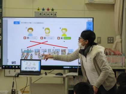 楽しみながら、友達よりも先に教科書にのっている教室を見つけようと、がんばっていました。
