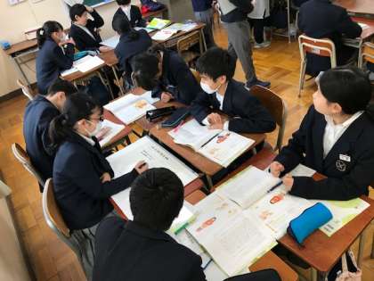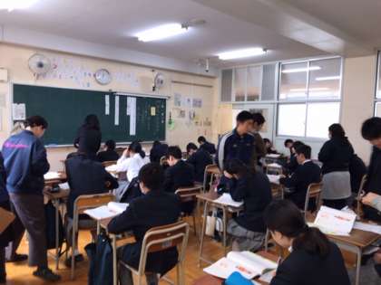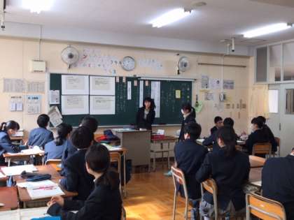 7年生で道徳の研究授業が行われ、小学校からも中学校からも多数の教員が参加しました。