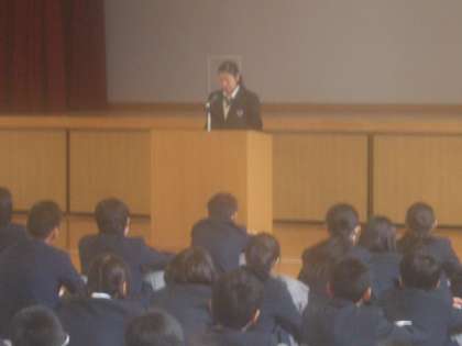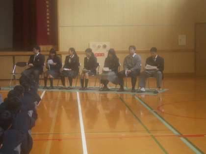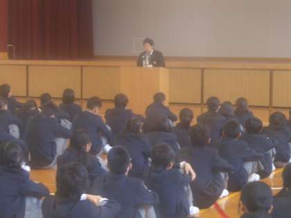 全校生徒のみなさんは、真剣に聞いていました。