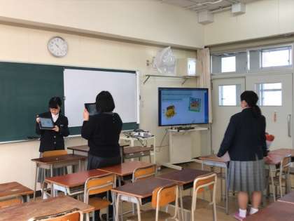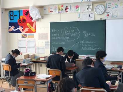 8年生の英語の授業で、自分の趣味や好きなことを英語で表現する取り組みをしています。
