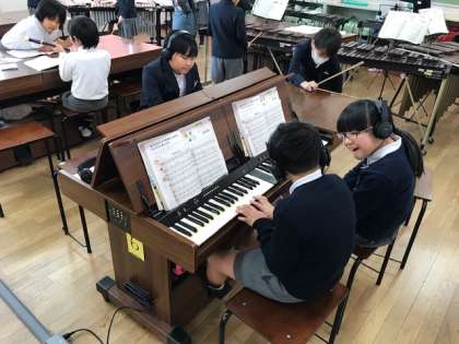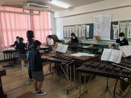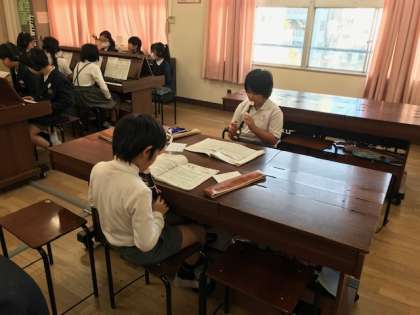 4年生の音楽の授業では、茶色の小びんという有名な曲の合奏に取り組んでいます。