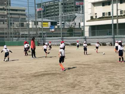 1年生の体育では、サッカーやかけっこ、なわとびなどで体力づくりをしたり、サッカーを通してボール運動をしたりしています。