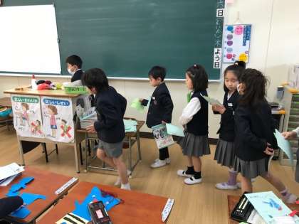 1年生でも、リーダー・イン・ミーの取組みで「○○名人」カードを作成しています。