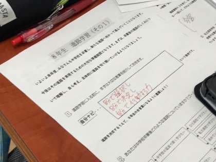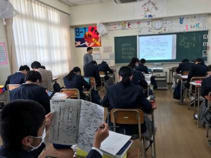 8年生は、高校進学にあたって様々な制度や仕組みなどについて各学級で学習を進めています。