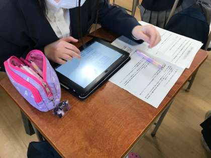 タブレットでそれぞれ興味のある高校についても調べました。明日も引き続き進路学習を行います。自分の進路を「自分ナビ」できるようにしっかりと学んでいきたいですね。