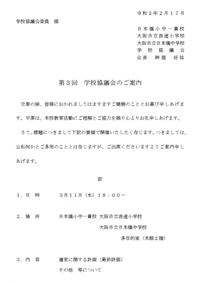 今年度最終の学校協議会となり、運営に関する計画の最終評価を行います。