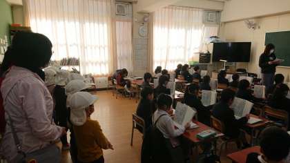 小学校の授業の様子や図書室などを見学。