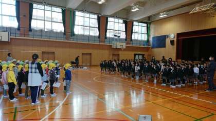 その後は体育館で、小学校のいろんなことを体験する交流会を行いました。