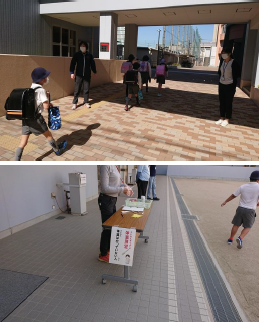 登校後、まずは「検温・マスクの確認」を行った後、全員手を洗いました。