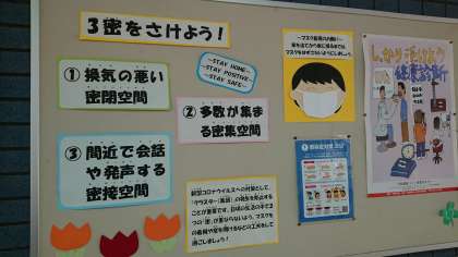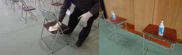 感染拡大防止のため、会場内の消毒作業などを行っています。