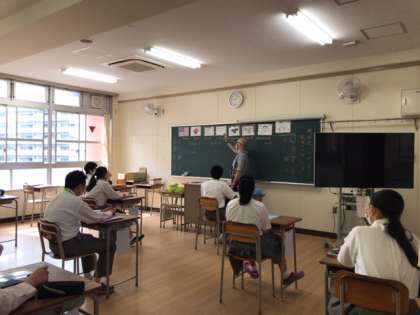 9年2組AグループはC-NETのZach先生と「現在完了・継続用法」の表現について学びました。