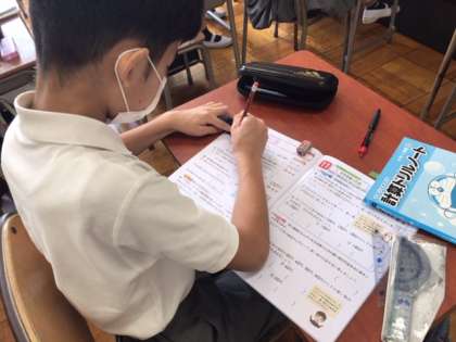 対称の軸や対称の中心について考えたり、作図をしたり、それぞれがんばっています。