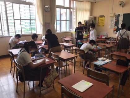 6年生のもう一方のクラスでは、算数の授業で対称な図形の学習を個別に進めていました。