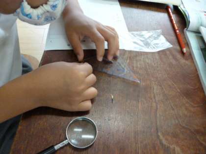 今日は実際にヒマワリ、マリーゴールド、ホウセンカの種をまく手順を学習しました。虫めがねを使って種を観察したり、ものさしで種の長さをはかったりしました。
