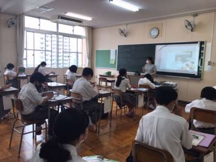 7年生の英語の時間に、自己紹介をしようというテーマで「I am 〜.」などの表現の学習をしていました。