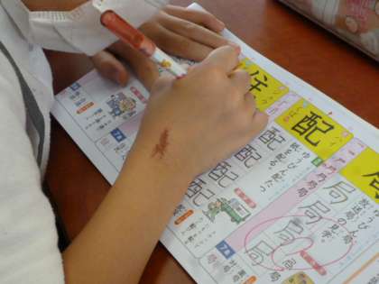 先生と一緒に、筆順をしっかりチェックしていますね!