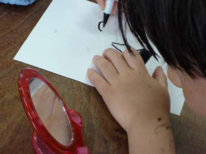 みんな熱心に鏡を覗きこみながら、ゆっくり丁寧にかくことができていました!